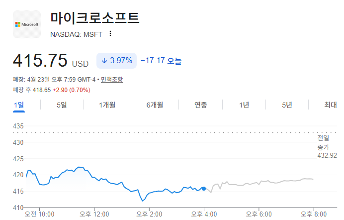 마이크로소프트의 주가는?