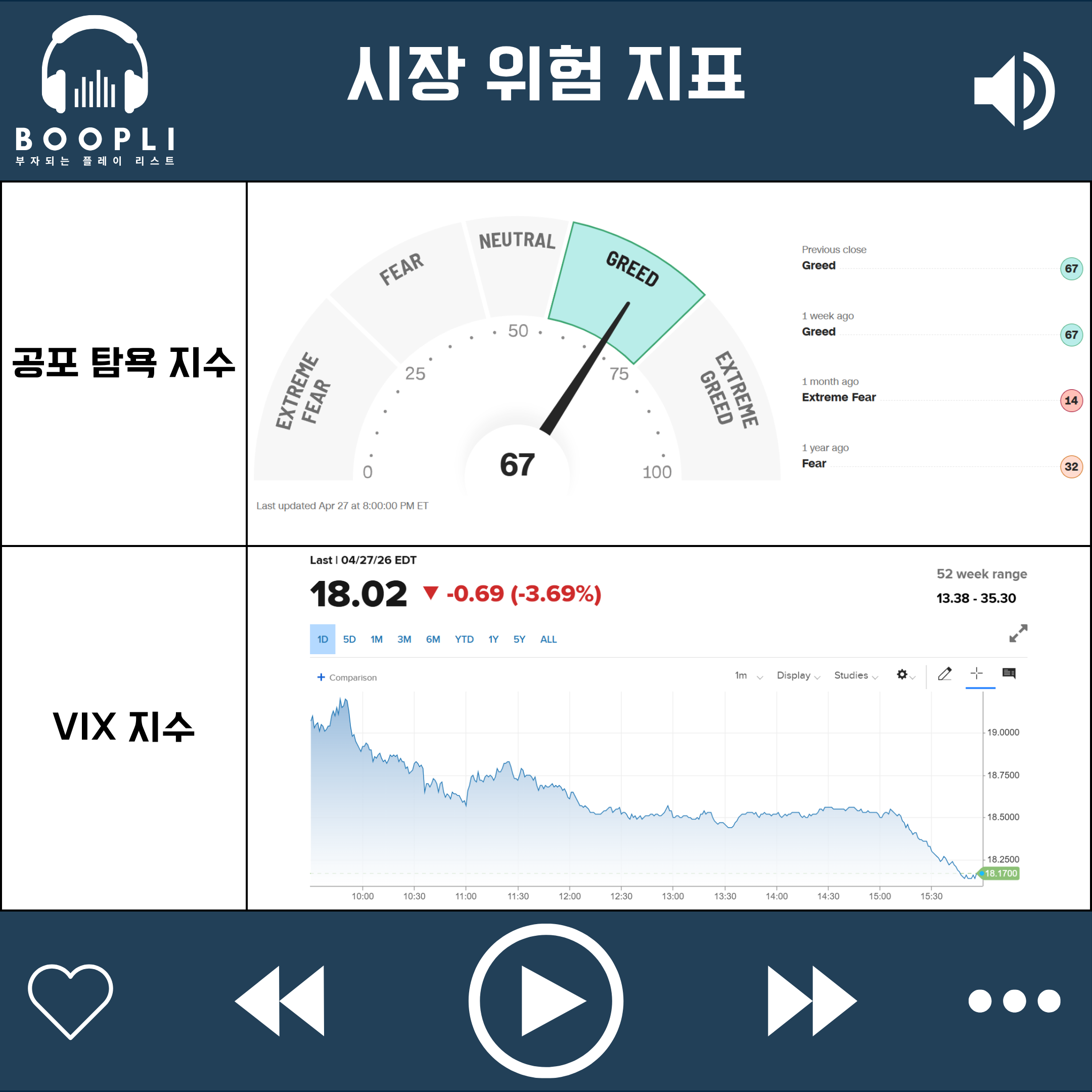전반적으로 전일 증시는 지정학 리스크와 유가 상승 부담이 지속됐음에도 견조한 어닝 시즌과 기술주 중심의 수급이 지수를 하단에서 지지하며 보합권에서 관망세를 보임