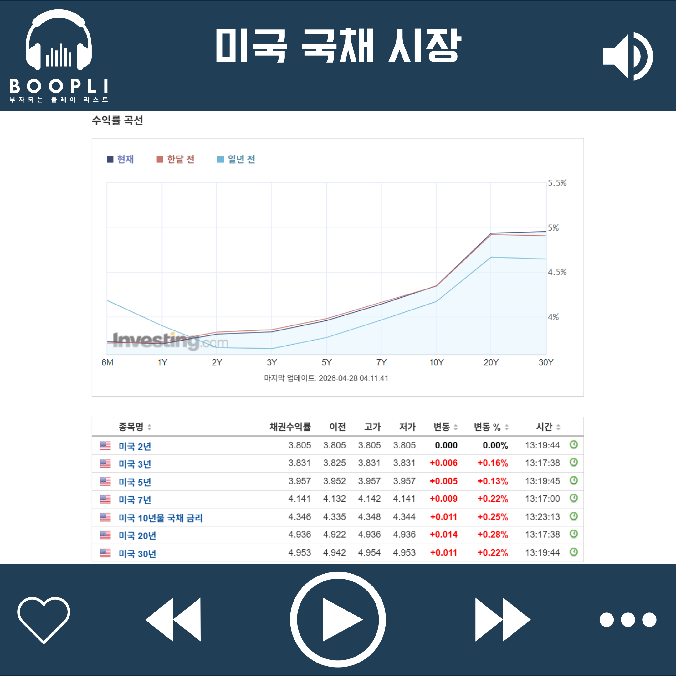 미국 국채는 미국과 이란의 협상 교착 상태가 지속되는 가운데, 국제 유가가 상승하면서 장단기 금리 모두 상승