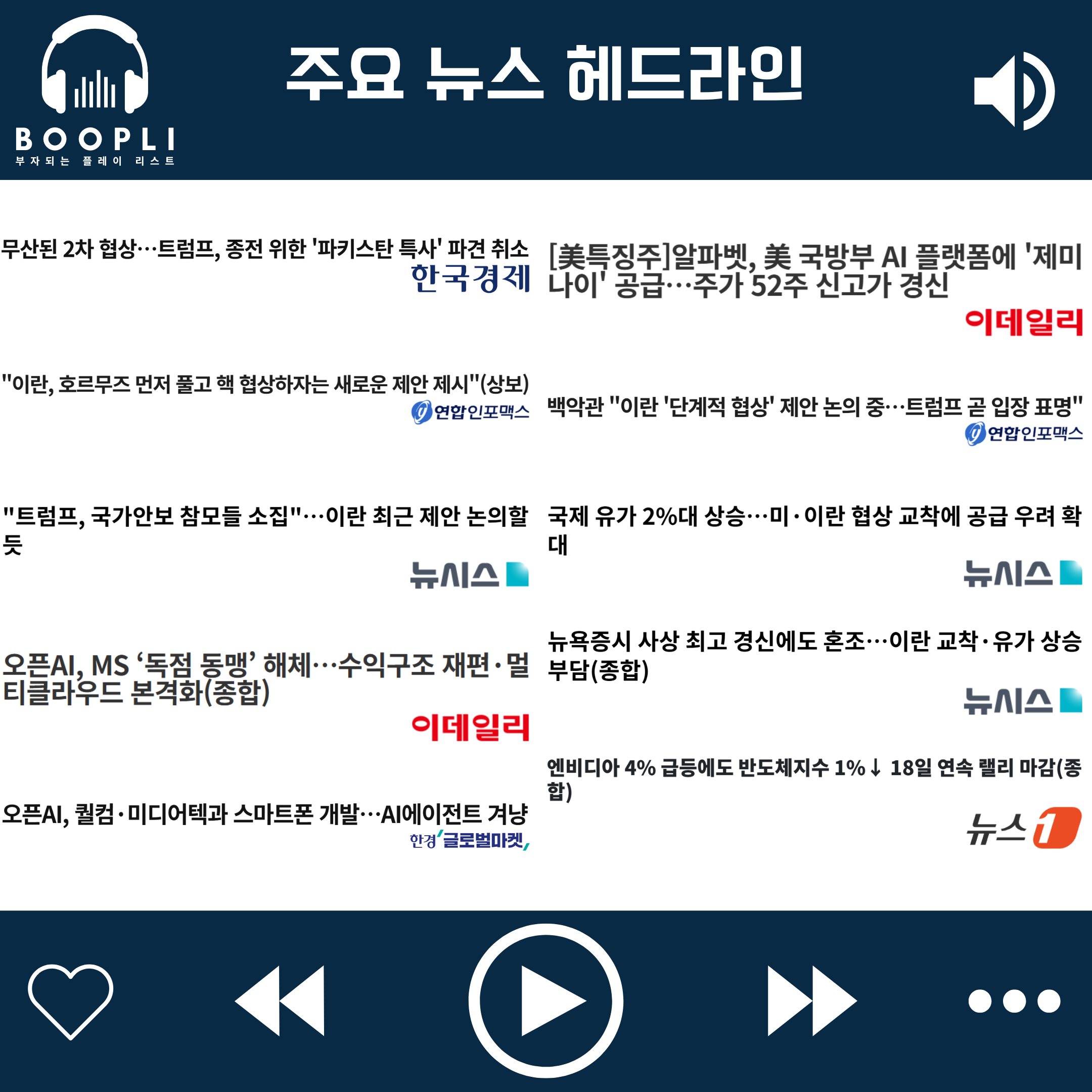 마이크로소프트는 오픈AI와의 수익 배분 체계 재편 및 멀티 클라우드 허용을 통해 사실상 독점 계약을 해체하자 하락했고, 애플은 오픈AI가 대만 미디어텍 및 퀄컴과 협력해 스마트폰 프로세서 개발을 추진한다는 소식에 경쟁 심화 우려로 약세를 보이며 장 초반 지수 하락을 주도