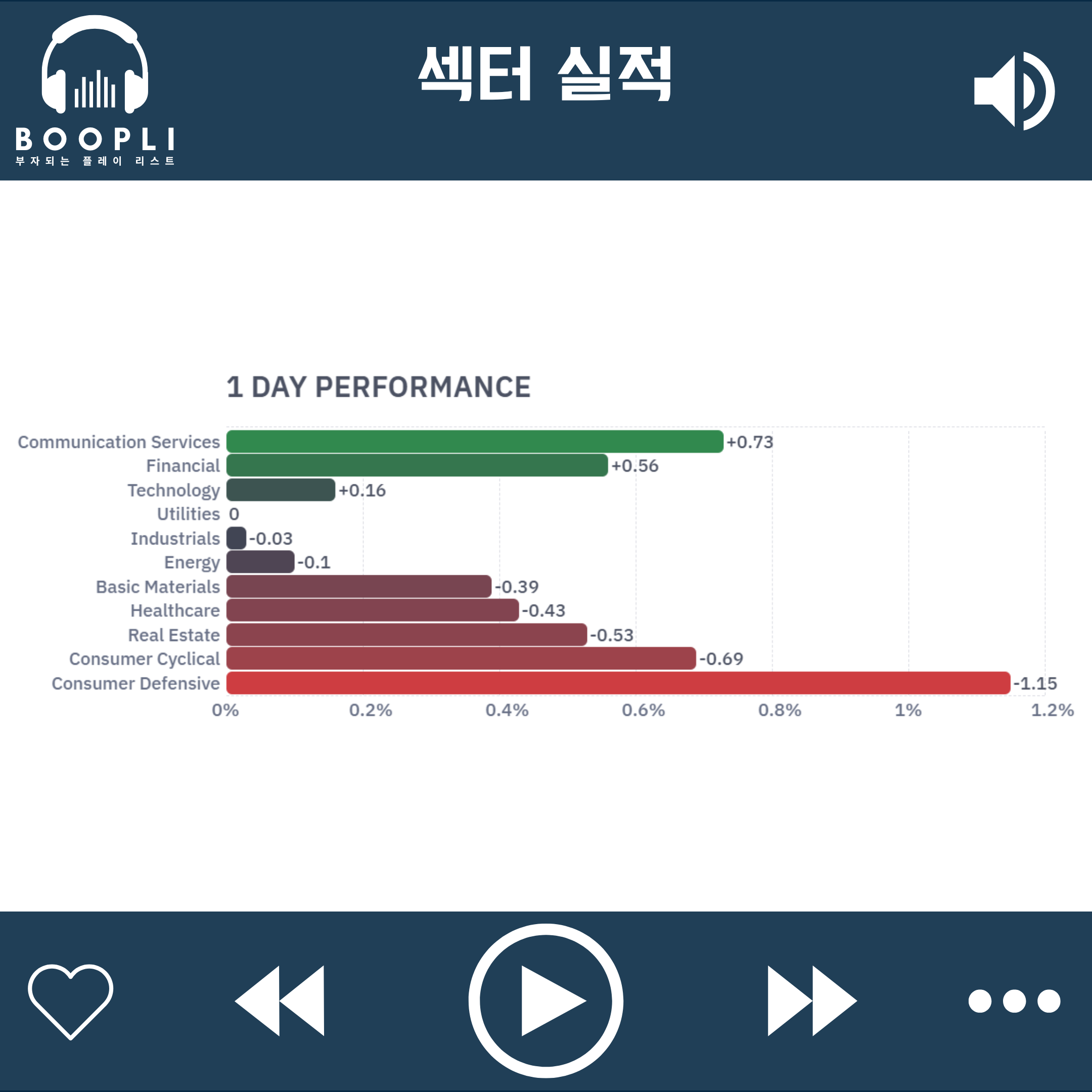 기술, 유틸리티 섹터는 강보합, 헬스케어, 원자재, 에너지, 산업재 섹터는 약보합 마감