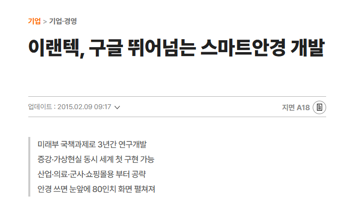 ① 국책 과제를 통한 스마트 글라스 개발 이력