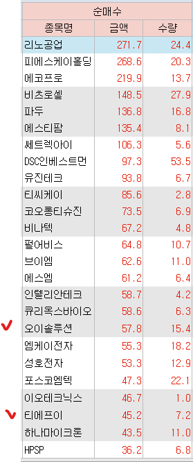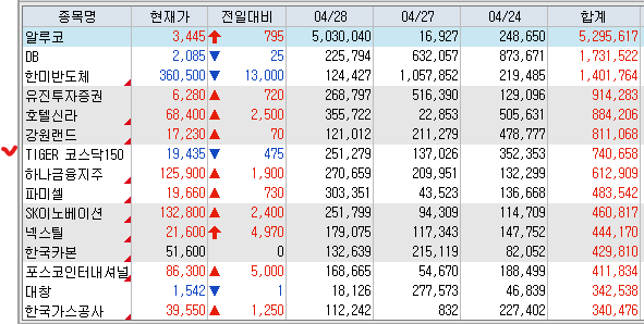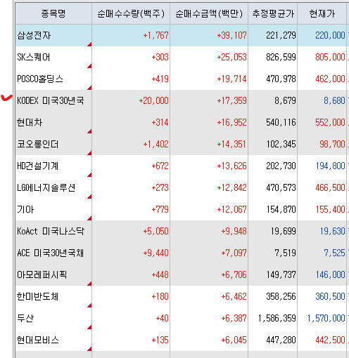 매수 : Tiger미국30년국채커버드콜액티브 맥쿼리인프라 Kodex200타겟위클리커버드콜 Kodex삼성그룹 Tiger배당커버드콜액티브 Tiger반도체TOP10 Tiger반도체 Tiger2차전지TOP10레버리지 Tiger2차전지 Kodex코스닥150 Tiger차이나전기차 셀트리온 오이솔루션 티에프이 SFA반도체