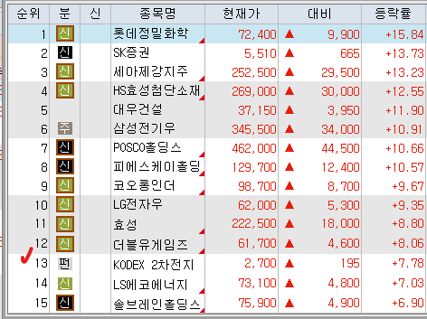 삼성SDI의 실적이 시장 예상치를 상회한 가운데, ESS 모멘텀, 리튬가격 상승 등으로 2차전지 업종이 상승(POSCO홀딩스 +10.66%, 솔브레인홀딩스 +6.90%, 삼성SDI +6.30%, 하이드로리튬 +5.97%)