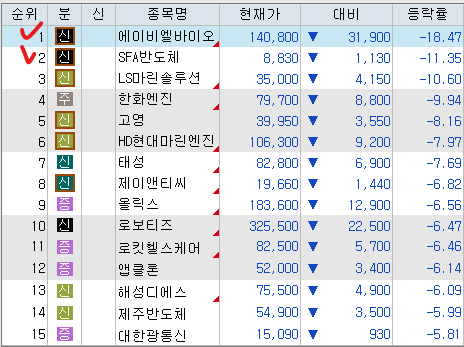 반면, 바이오 업종 전반이 투자심리가 약화되며 하락