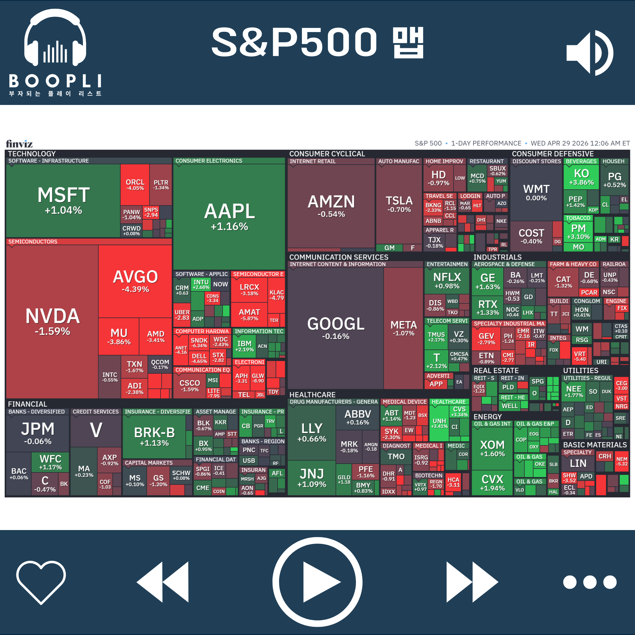 금융 섹터는 강보합, 커뮤니케이션 서비스, 유틸리티, 헬스케어 섹터는 약보합 마감