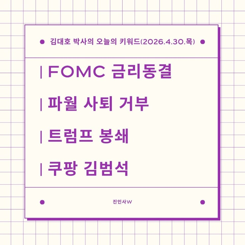 #김대호박사의오늘의키워드 #sbsbiz채널 #경제흐름읽기 #거시경제읽기 #세계주요이슈읽기 #한국경제주요이슈보기 #주식들여다보기 #부동산들여다보기 #시간은소중히쓰자 #FOMC금리동결 #파월사퇴거부 #트럼프봉쇄 #쿠팡김범석