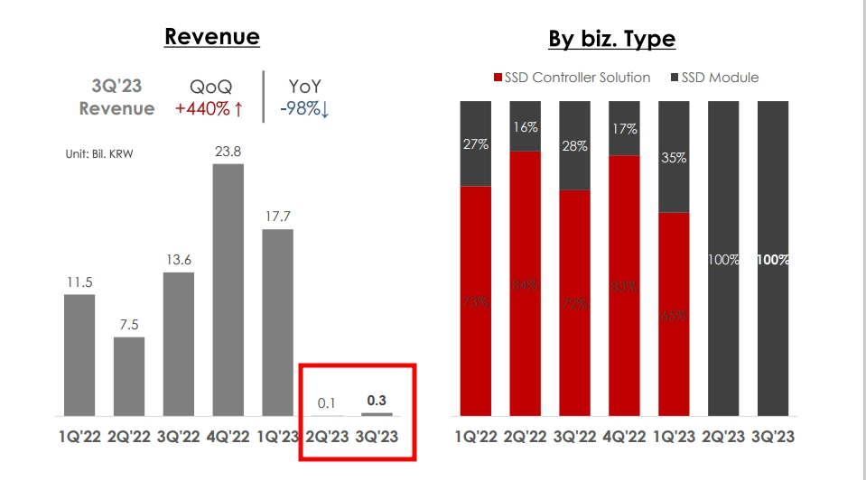 특히 하이닉스와의 SSD컨트롤러 거래가 끊기면서 매출액이 급감함.