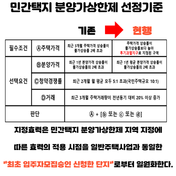 분양가격은 택지비 + 건축비로 산정한다. 그리고 분양가 상한제에 의해 실거주 의무 폐지와 분양권 전매제한이 세트로 규제한다.