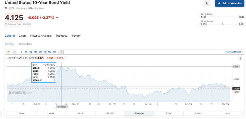2023년 10월에 거의 5%에 육박했던 미국채 10년 금리가 상당한 속도로 빠졌는데 금(Gold)과 상관 관계가 보다 높은 것은 장기채 금리라고 볼 수 있습니다.